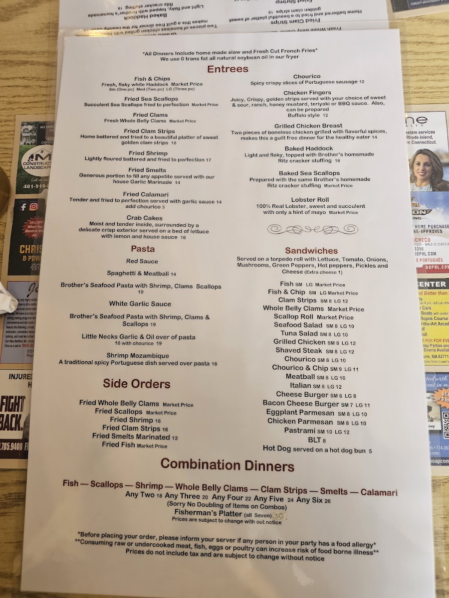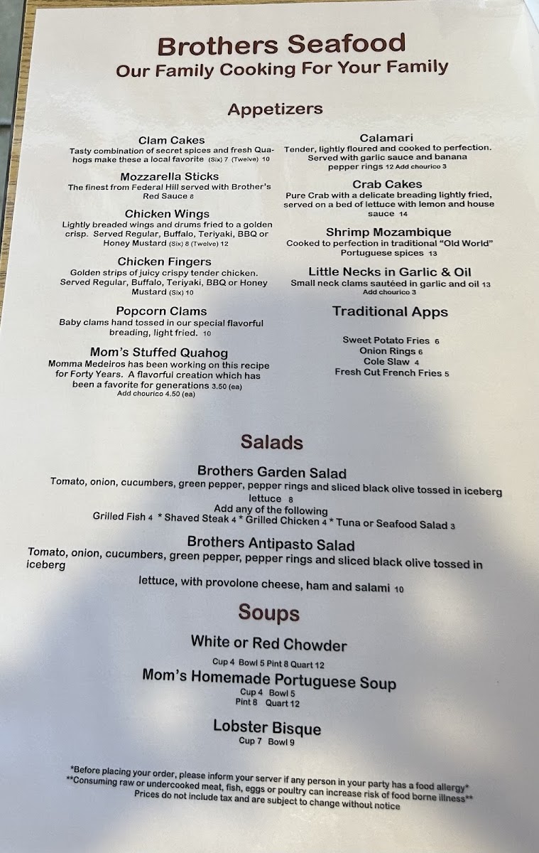 Brothers Seafood Restaurant Menu